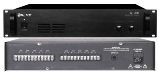 2路信號(A、B音源)輸入,6路放大信號輸出