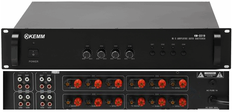產品用途 主備功放切換器,主要預防常用功放意外損壞等情況保證廣播系統(tǒng)正常工作,發(fā)生故障時且無必人工更換,自動切換至備用功放,確保系統(tǒng)正常。 多用于校園廣播中,確保考試語音播放正常 產品功能特點 (描述產品的功能,性能) 具有4路完全相同的獨立切換通道,供4臺主功放和4臺備用功放自動檢測切換。 自動檢測聲頻功放故障并在主功放和備用功放之間自動切換。 有手動切換主功放和備用功放的功能。 切換時間小于0.2S。 4組功率信號輸出,接揚聲器。 狀態(tài)顯示,一目了然。