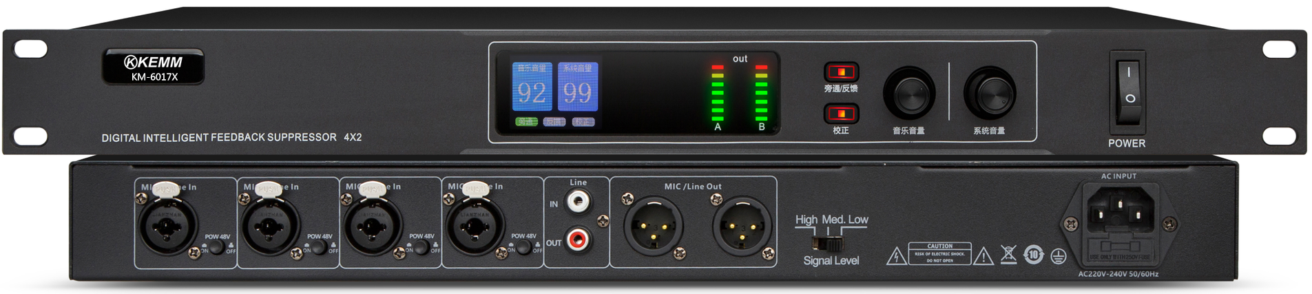 功能特點(diǎn):反饋抑制系統(tǒng)具有全自動檢測現(xiàn)成嘯叫點(diǎn)功能,通過DSP系統(tǒng)對聲音進(jìn)行過濾,高速有效的抑制消叫,有效提升本地?cái)U(kuò)音聲壓和清晰度。