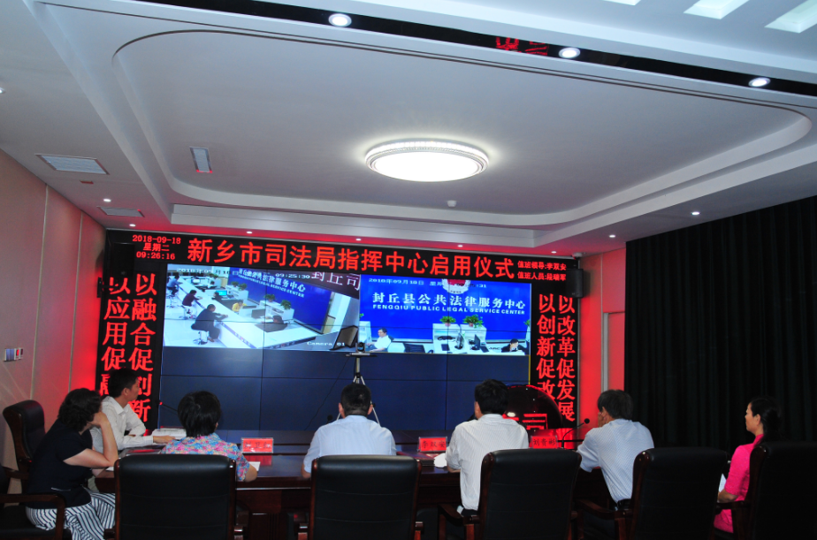 新鄉(xiāng)市司法局是人民政府的職能部門。負(fù)責(zé)研究擬定全市司法行政工作的措施,編制司法行政工作中長期規(guī)劃、年度計(jì)劃并組織實(shí)施。為貫徹落實(shí)司法部、省司法廳關(guān)于加強(qiáng)司法行政信息化建設(shè)的相關(guān)要求,進(jìn)一步提升司法行政系統(tǒng)聯(lián)網(wǎng)聯(lián)動(dòng)、統(tǒng)一指揮、快速響應(yīng)、信息共享的作戰(zhàn)能力,更好履行司法行政工作在維護(hù)社會(huì)大局穩(wěn)定的職責(zé)使命。新鄉(xiāng)市司法局高起點(diǎn)規(guī)劃、高標(biāo)準(zhǔn)建設(shè),投資近120萬元,建成了市級指揮中心,并于2018年9月18日上午9時(shí)舉行了指揮中心啟用儀式。采用KEMM科米視頻會(huì)議系統(tǒng)完美竣工。