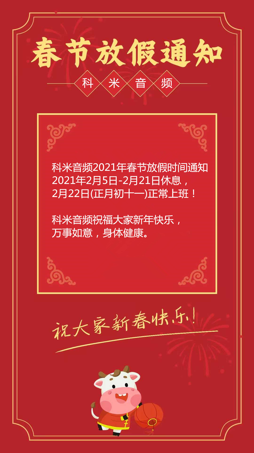 科米音頻2021年春節(jié)放假通知!