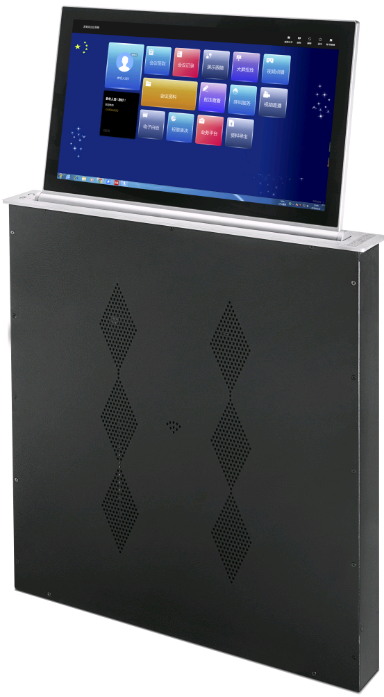 7、升降器支持電動仰角0-30度,可點動微調(diào),也可連續(xù)調(diào)節(jié)角度,保證顯示器最佳觀看視角與觸控角度;升降器具有觸摸屏防護系統(tǒng),防抖動設(shè)計,安全可靠,避免觸摸過程中用力過大而造成升降器的損壞現(xiàn)象。