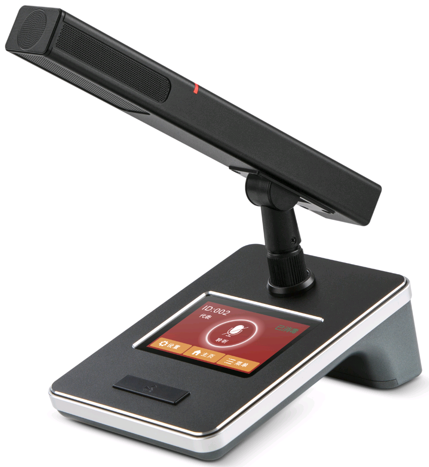 金屬方形話筒桿帶有紅色LED光圈工作指示燈,可顯示正在發(fā)言、聆聽狀態(tài);