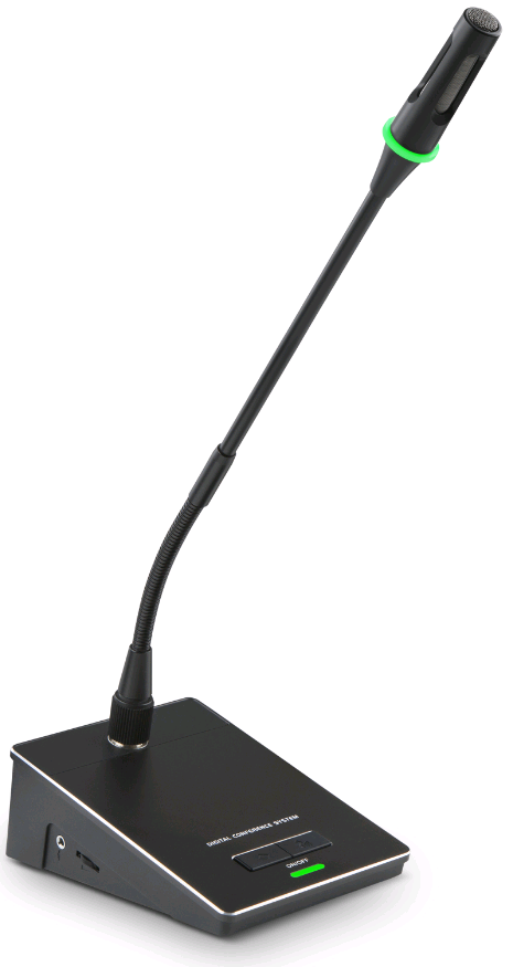 話筒桿帶有綠色LED光圈工作指示燈,可顯示正在發(fā)言、聆聽狀態(tài);