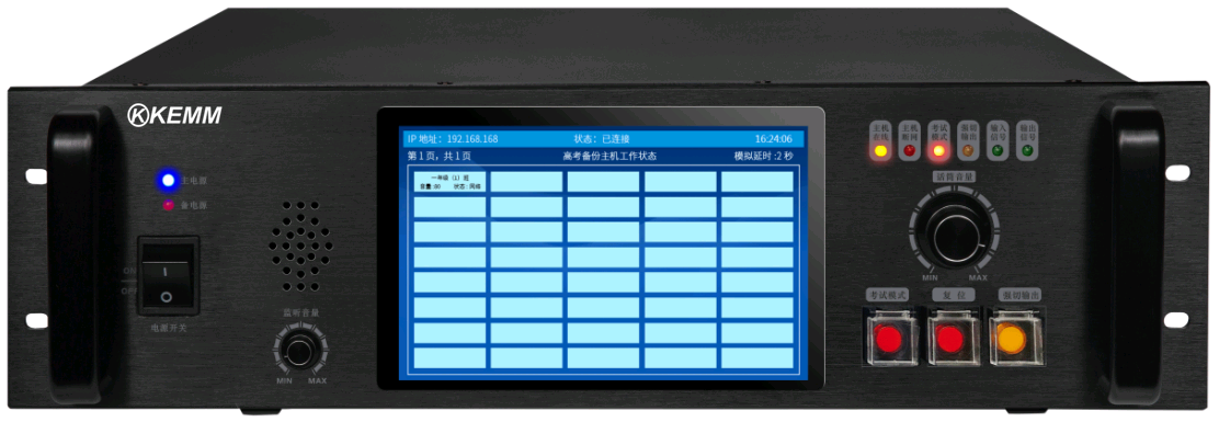 11、設(shè)有在線、斷網(wǎng)、考試模式、強(qiáng)切輸出、信號(hào)輸入、信號(hào)輸出的LED工作指示燈,可以通過(guò)指示燈了解主機(jī)的實(shí)際工作狀態(tài)