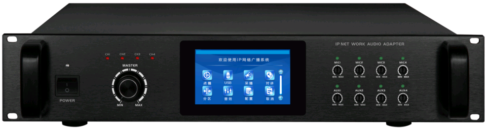 4、設(shè)有4路MIC與4路AUX音頻輸入,輸入接口可根據(jù)用戶實際應(yīng)用環(huán)境靈活選擇,每路音量可獨立控制,獨立信號指示燈顯示工作狀態(tài)
