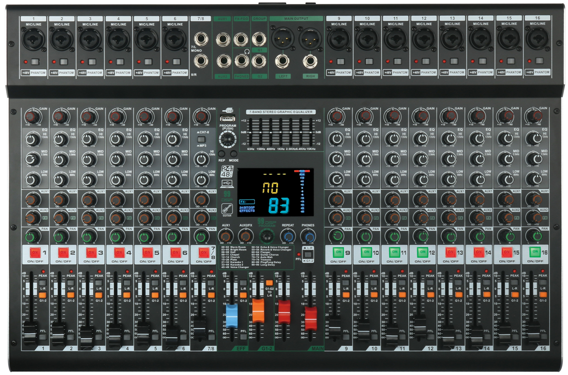 ●16通道設(shè)計(jì),14路MIC單聲道+1組立體聲輸入