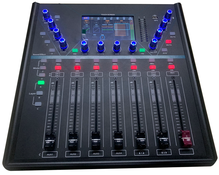 8路模擬信號(hào)輸出(主輸出L,R, 4路AUX1-4輔助輸出,2路立體聲耳機(jī)輸出)