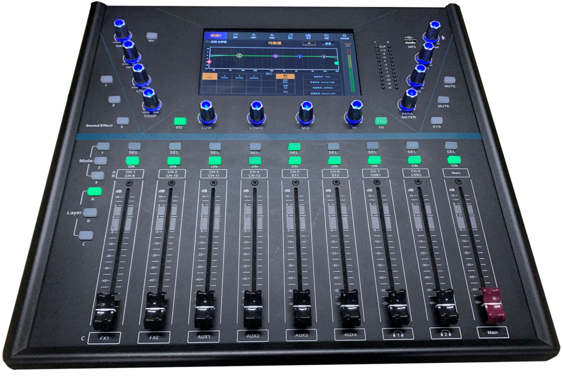 8路模擬信號(hào)輸出(主輸出L,R, 4路AUX1-4輔助輸出,2路立體聲耳機(jī)輸出)